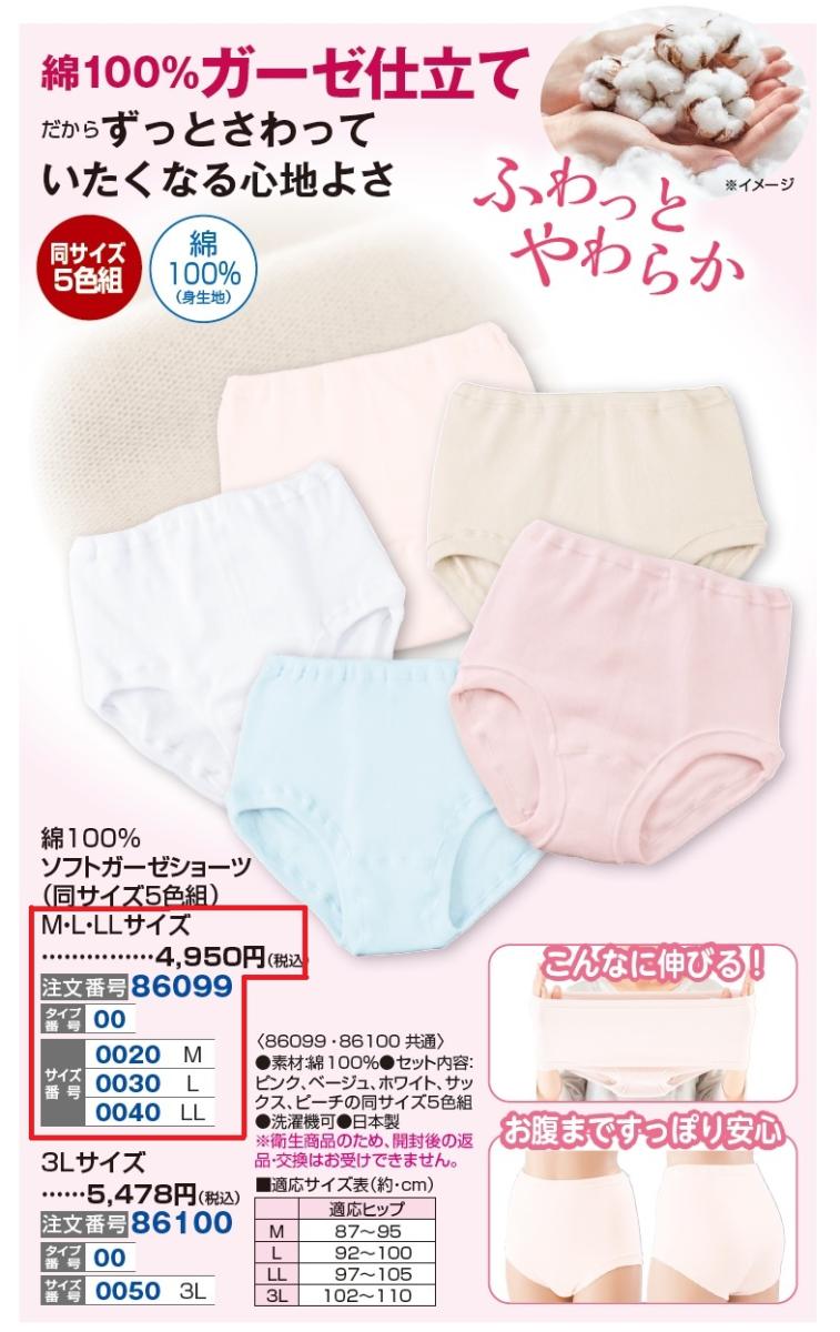 3. M・L・LLサイズ/綿100%ソフトガーゼショーツ(同サイズ5色組)