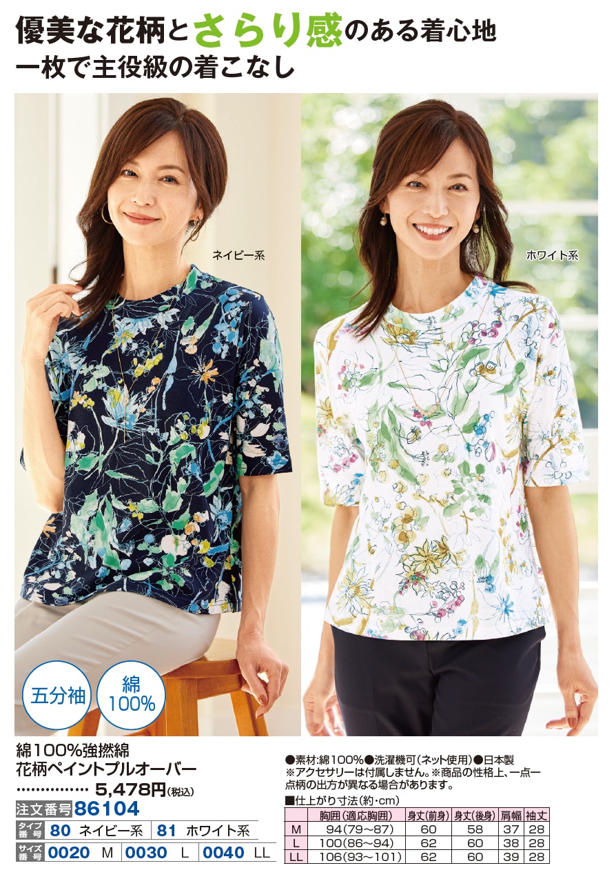 3. 綿100%強撚綿花柄ペイントプルオーバー