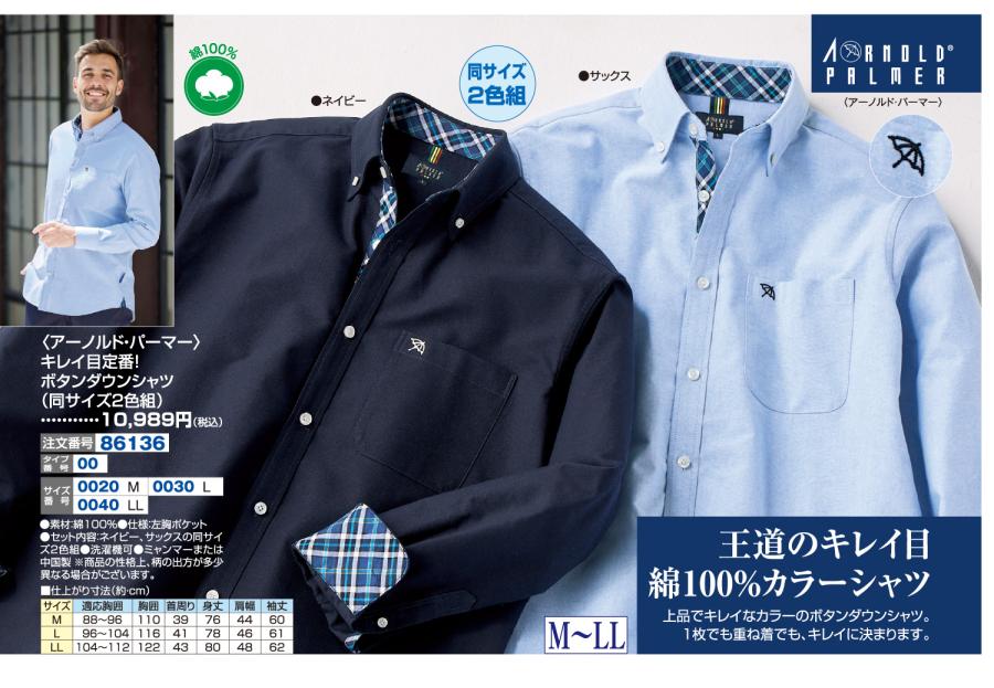 〈アーノルド・パーマー〉キレイ目定番!ボタンダウンシャツ(同サイズ2色組)