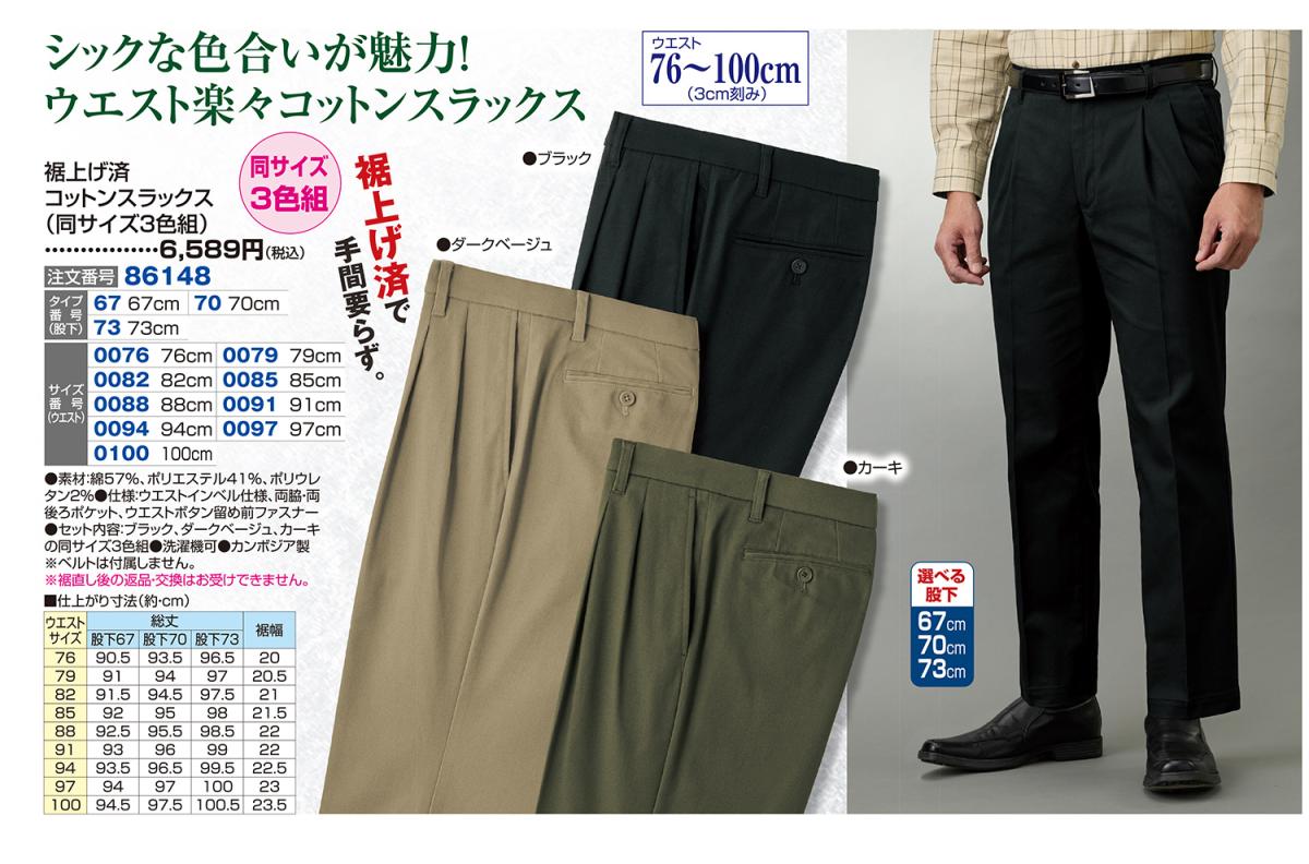 裾上げ済コットンスラックス(同サイズ3色組)