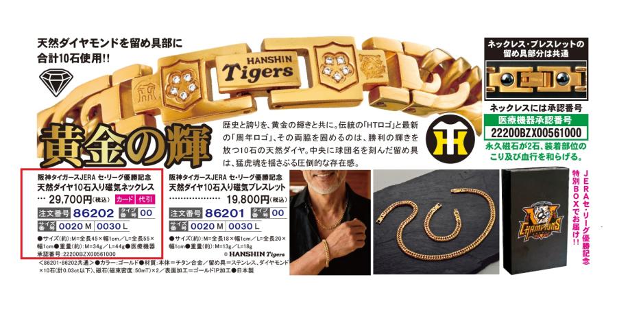 阪神タイガースJERAセ・リーグ優勝記念天然ダイヤ10石入り磁気ネックレス