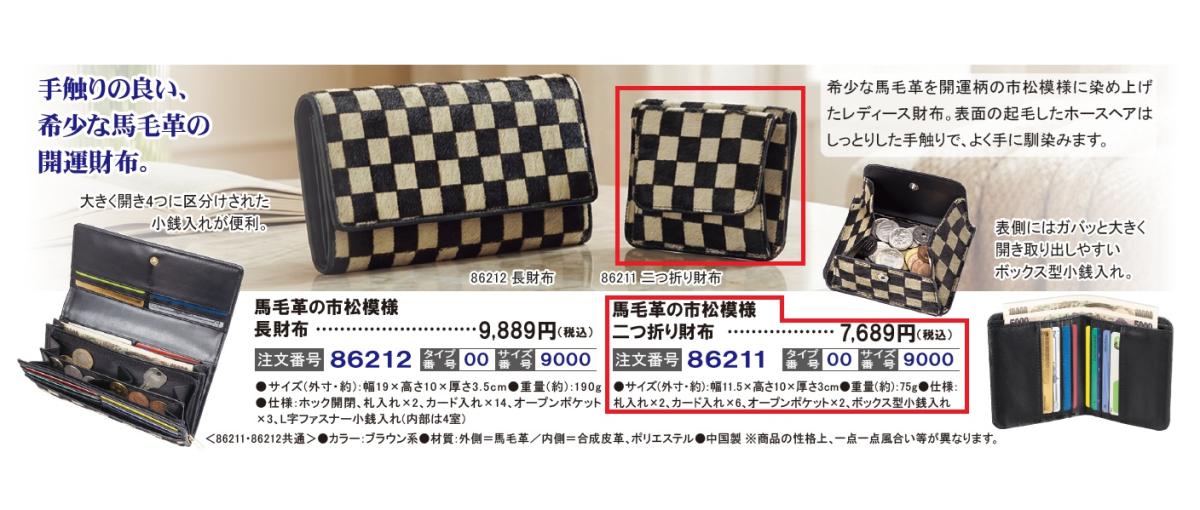 馬毛革の市松模様二つ折り財布
