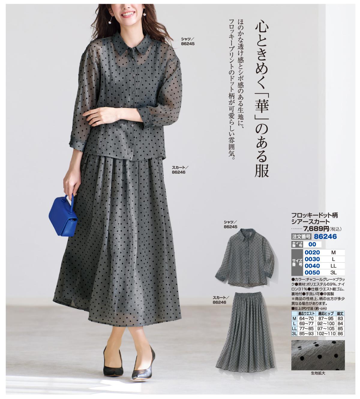 フロッキードット柄シアースカート