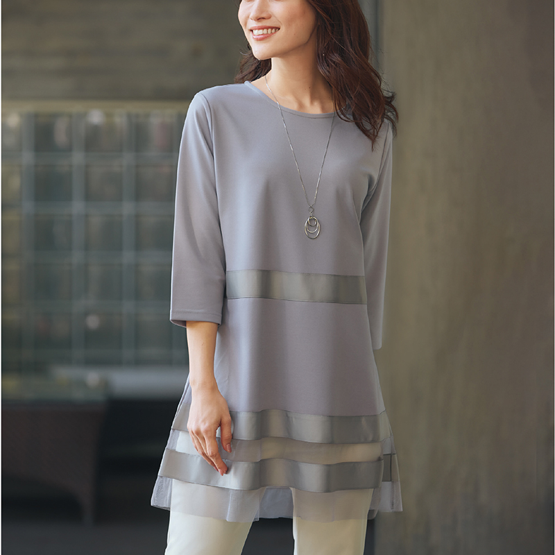 異素材ボーダー切替えチュニック