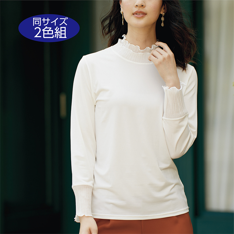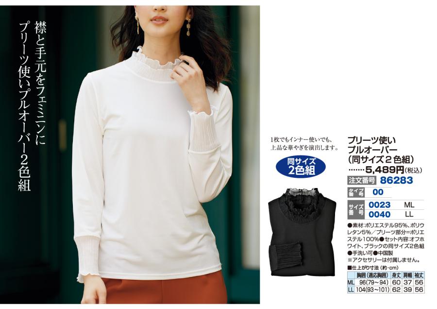 プリーツ使いプルオーバー(同サイズ2色組)