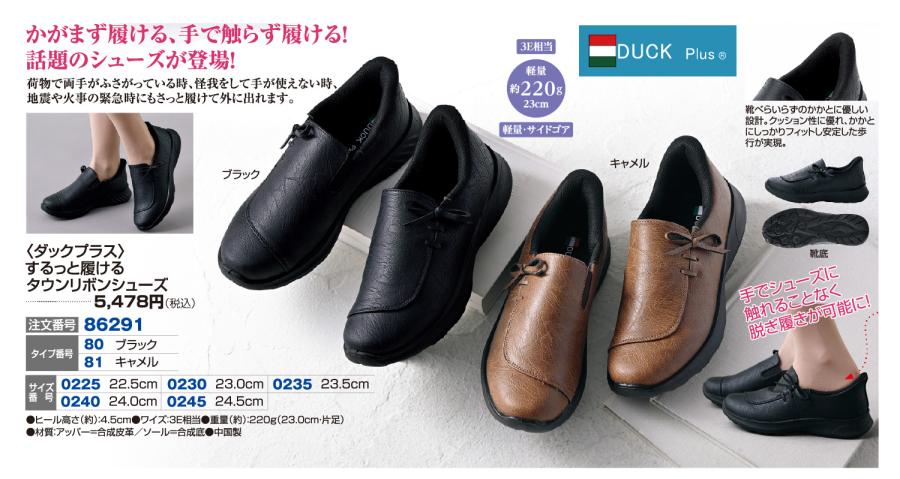 〈ダックプラス〉するっと履けるタウンリボンシューズ