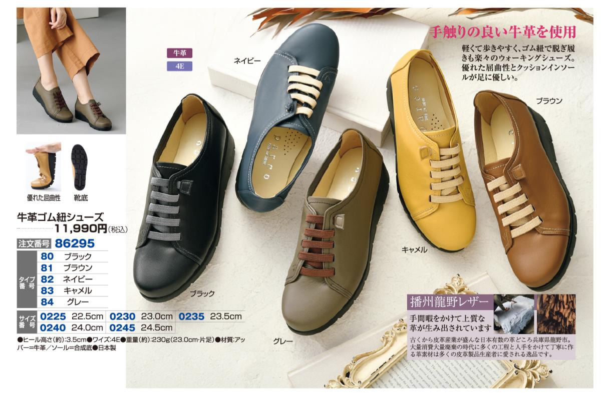 牛革ゴム紐シューズ