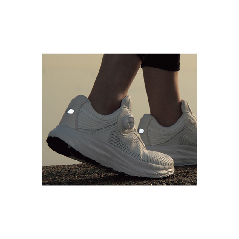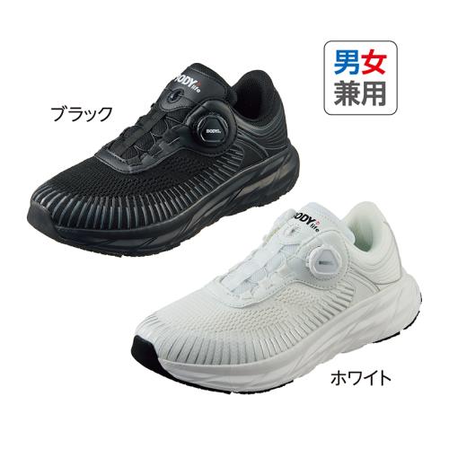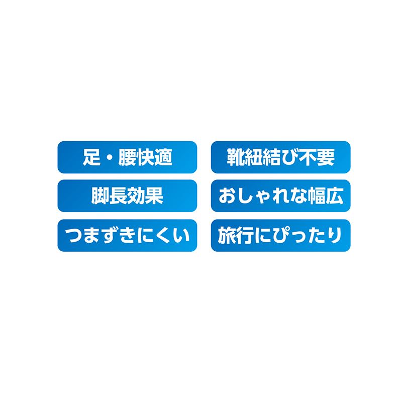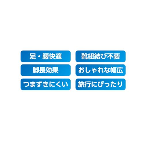 約4.5cm厚底効果で雲の上を歩くような感触。アスファルトの道でもひざ腰が楽々。 約4.5cmの厚底ソールとクッションインソールが足裏への衝撃を受け止め、軽やかに歩けます。つま先上がりの船底型ソールでつまずきにくく、足が自然に前に出るローリング歩行が爽快です。 ●ワイズ:4E ●重量(約):286g(25.5cm・片足) ●材質:アッパー=ポリエステルニット/ソール=ラバー ●中国製