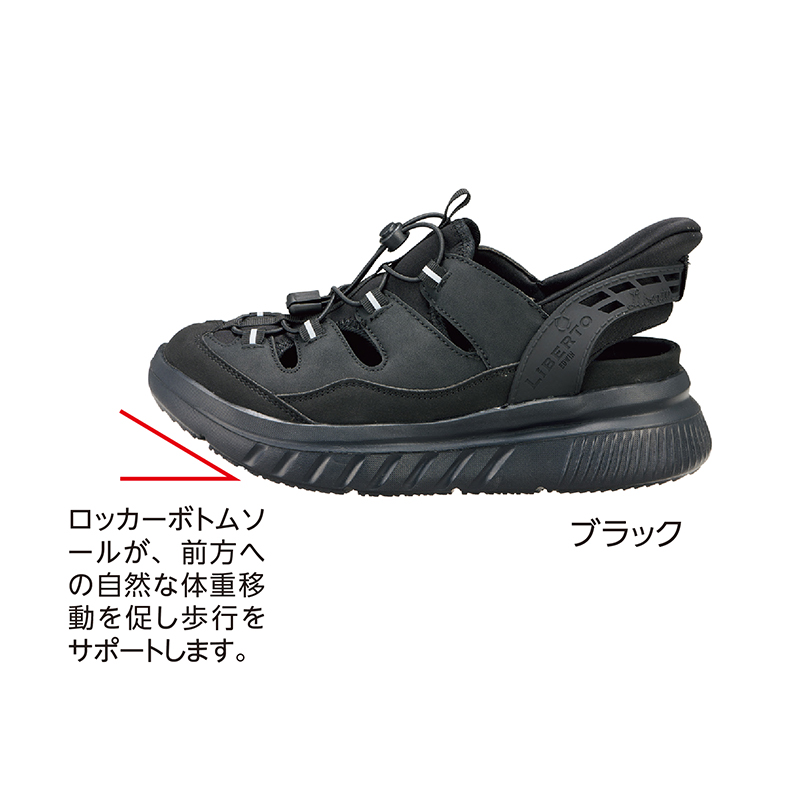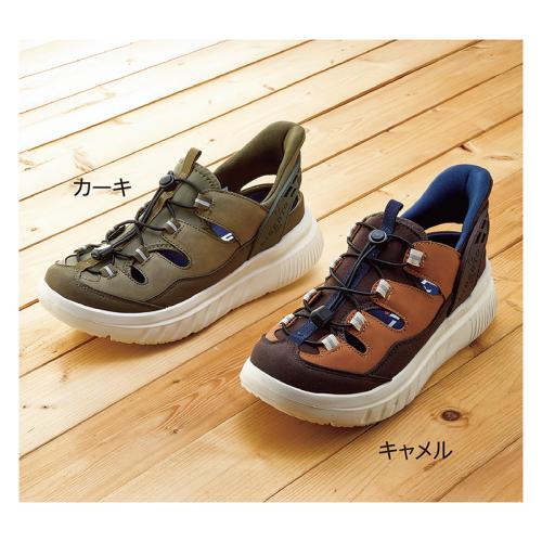 特許取得のバックバンド補助。歩行も快適、秒で履けるサンダル。 厚底EVA構造で高いクッション性が魅力。ロッカーボトムソールが楽々歩行をサポートします。特許取得のバックバンド補助は、スッと秒で履ける快適さ。きっとやみつきになります。 ●ワイズ:3E相当 ●重量(約):295g(26.0cm・片足) ●材質:アッパー=合成皮革、合成繊維/ソール=合成底 ●中国製
