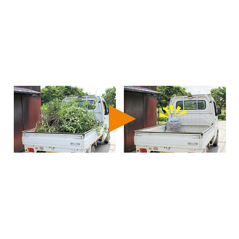 荷台からはみ出すほどの枝が、スッキリ!