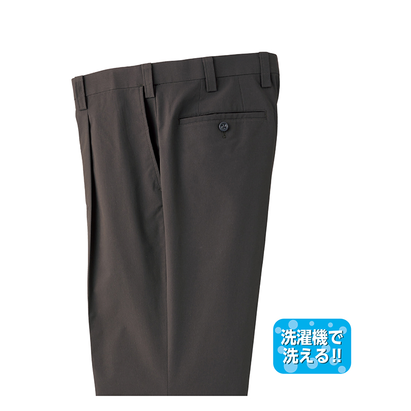 チャコールグレー/〈ゴールデンベア〉ストレッチワンタックスラックス