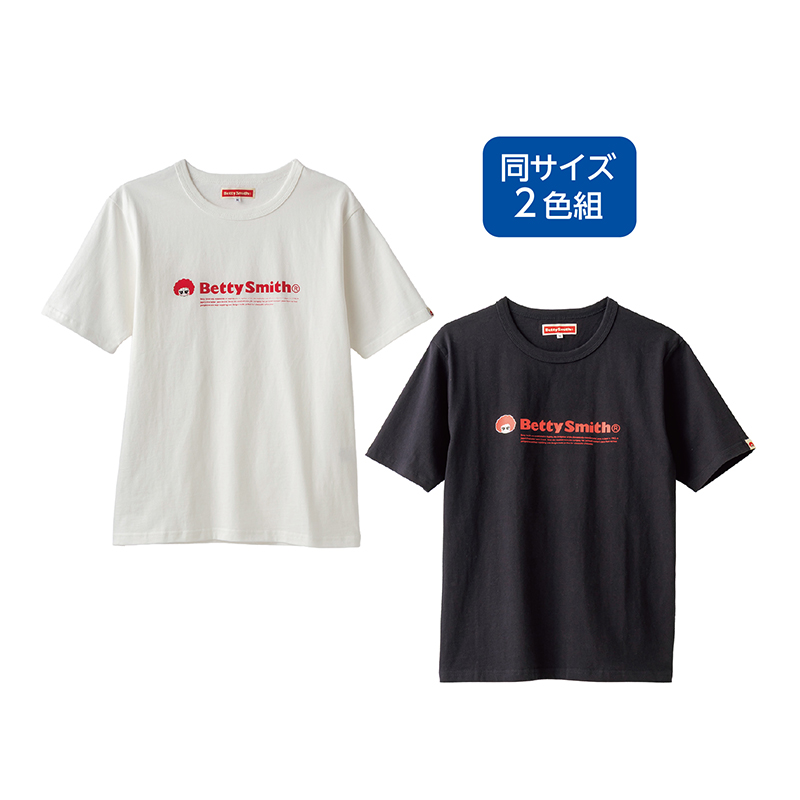 ベティスミスのキャラクター、ベティとロゴのプリントT。 ●素材:綿100% ●セット内容:ネイビー、ホワイトの同サイズ2色組 ●洗濯機可(ネット使用) ●中国製
