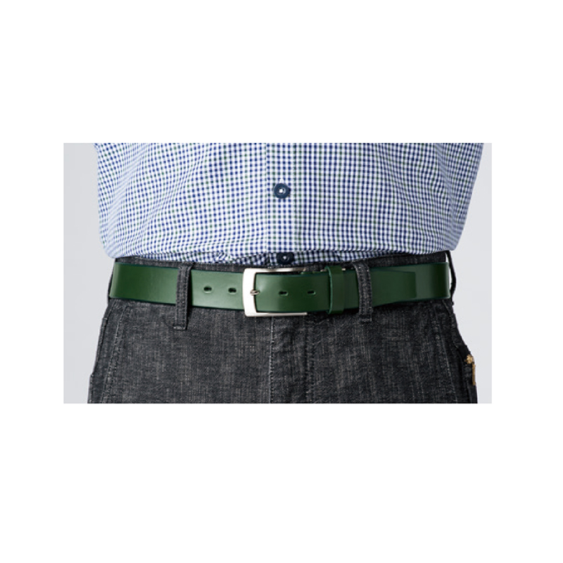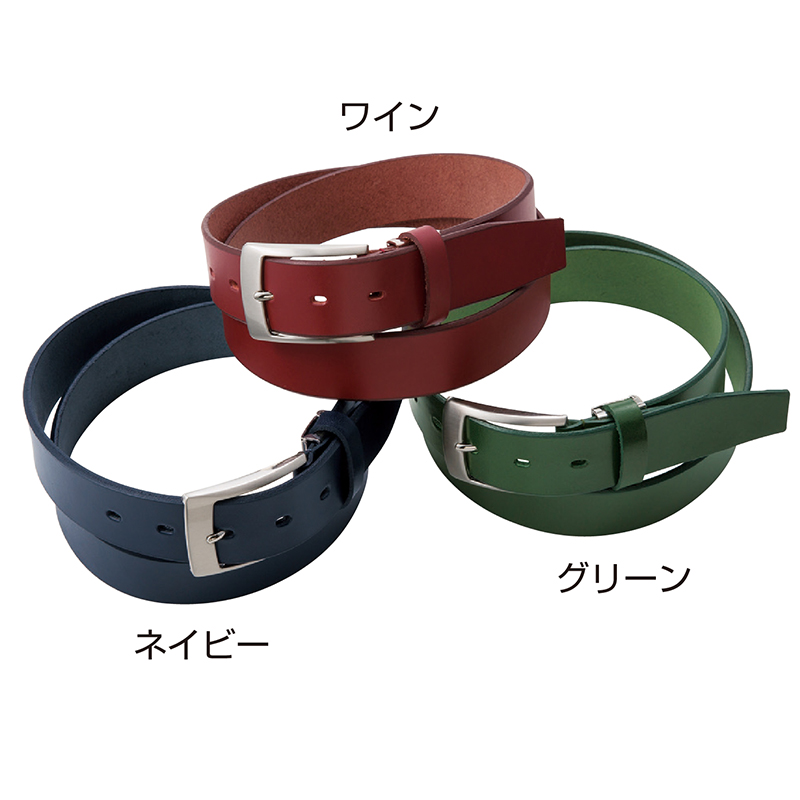色で魅せる、姫路レザーの豊かな風合い。 人気の姫路レザーを使った国産紳士ベルト。重厚な質感はビジネスにもカジュアルにもピッタリ。美しい色合いも楽しめます。 ●サイズ(約):全長112×幅3.5×厚さ0.4cm/適応ウエスト=最大100cm ●重量(約):150g ●材質:本体=牛革/バックル=亜鉛合金 ●仕様:5穴(2.5cm ピッチ) ●日本製 ※商品の性格上、一点一点風合い等が異なります。 ※ベルトカット後の返品・交換はお受けできません。