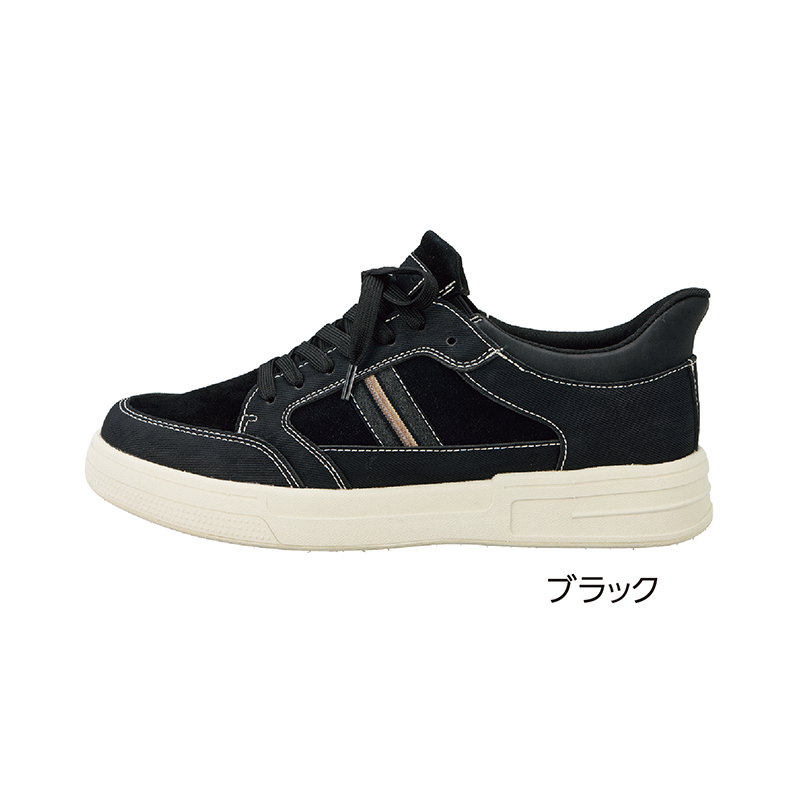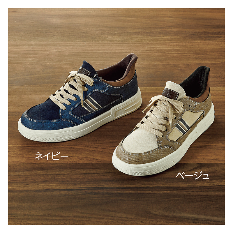 秒で履ける防水設計スニーカー。デニム調×マイクロスエードで洗練された足元に。 アッパーにデニム調ポリウレタンとマイクロスエードを配し、表情豊かに。約260gの軽さながらも、高さ約4cm4時間防水設計にグリップ力も備えた一年を通して使える1足。 ●ワイズ:3E相当 ●重量(約):260g(26.0cm・片足) ●材質:アッパー=合成皮革/内側=合成繊維/ソール=合成底 ●中国製