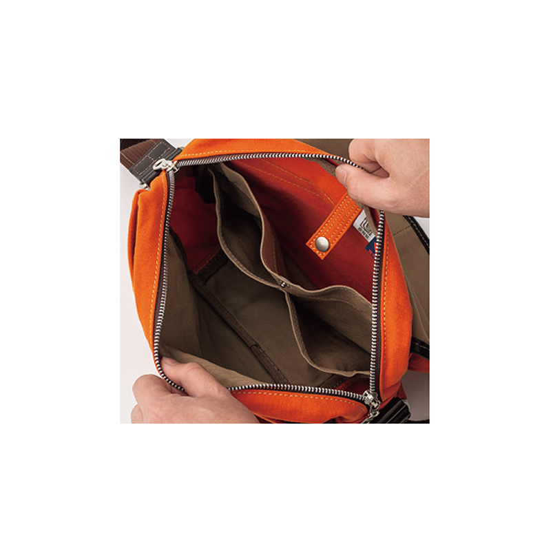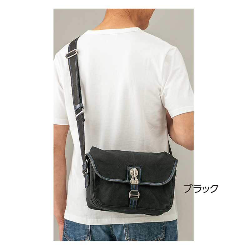 洗い加工によるやわらかさとシワ感を味わう。直帆布のショルダーバッグ。 複数のポケットを配した、整理しやすい設計が魅力。国産パラフィン帆布を採用し、洗い加工により、やわらかさとシワ感が際立ちます。ヒコーキナスカンがデザインのポイントです。 ●サイズ(外寸・約):幅28×高さ20×厚さ10cm/ショルダーベルト長さ=84~136cm(着脱不可) ●重量(約):500g ●材質:本体=国産10号パラフィン帆布(富士金梅)、牛革/ショルダーベルト=綿 ●仕様:ナスカンフラップ式ダブルファスナーメインコンパートメント(内部にホックポケット×1、オープンポケット×2)/フラップ下前面=オープンポケット×3(大内部にペン差し×3、ゴムベルト×1) ●日本製