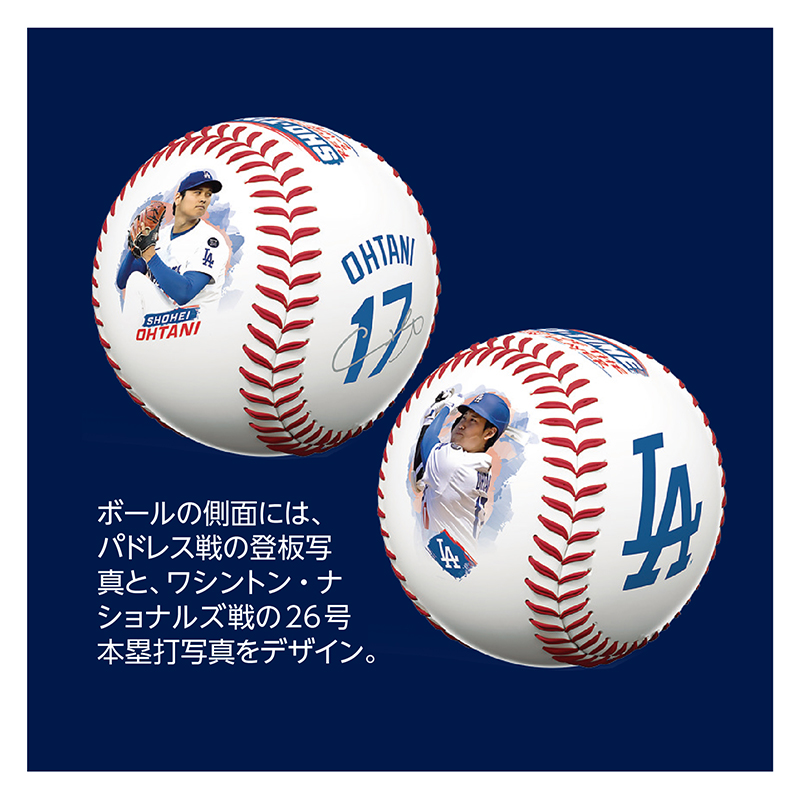 2025年ドジャースWS制覇の感動を飾る。大谷翔平の二刀流復活を記念した、限定1700点の公式記念球。 2025年6月、大谷翔平選手はサンディエゴ・パドレス戦に先発し、2シーズンぶりに二刀流復活。大谷選手の写真とサインをプリントした公式記念球です。特製展示ケース付でお届けします。 ●サイズ(約):ボール=直径7.3cm/展示ケース=縦11.5×横14.3×高さ25.5cm ●重量(約):ボール=144g/ケース=638g ●材質:ボール=ビニール(ローリングス社製)/展示ケース=ポリエチレン、アクリル、メタル ●セット内容:大谷選手ネームボール×1、展示ケース ●ボール=中国製/展示ケース=アメリカ製 ※シリアルナンバーのご指定はお受けできません。 ※サインは直筆ではなくプリントです。 ※お届けまで約2週間かかる場合があります。