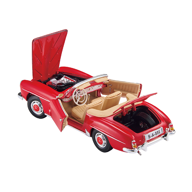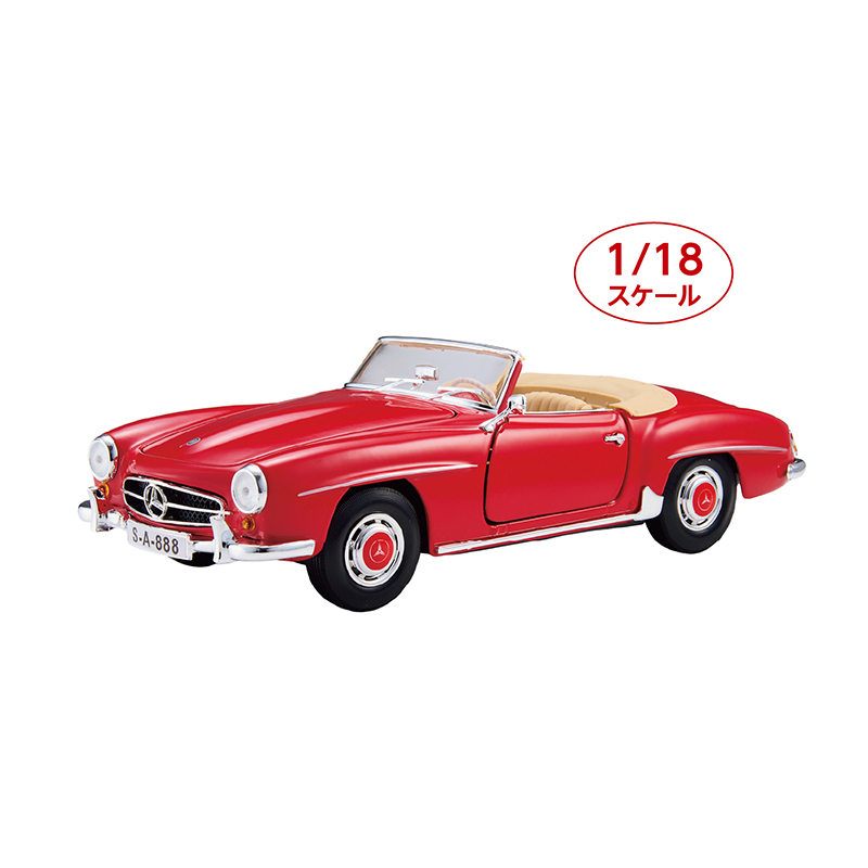 50年代に舞い降りた高級ロードスターを1/18スケールでリアルに再現しました。 300SLの後継車として発売された高級スポーツカー190SL。現在でも2000万円以上で取引されているヴィンテージモデルを1/18スケールで細部まで忠実に再現しました。 ●カラー:レッド ●サイズ(外寸・約):本体=全長24×全幅9.5×全高7cm ●重量(約):本体=540g ●材質:本体=亜鉛合金ダイキャスト、プラスチック ●仕様:ボンネット・ドア・トランク開閉、ステアリング・フロントタイヤ・リアタイヤ可動 ●中国製