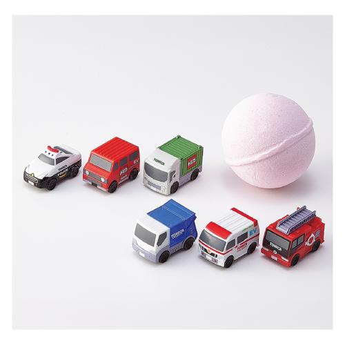 ポンと入れれば入浴料の中から小さなトミカが出現!! おふろでGO!! ボール状の炭酸入浴料を湯船に入れると、泡の中から小さな「働く車」が出現! 全6種が必ず2セット揃う、コンプリートセットです。体の芯から温まりながら、ワクワクドキドキのバスタイムをお楽しみください。 ●パッケージサイズ(外寸・約):幅2×奥行7×高さ14cm ●セット重量(12個・約):1.5kg ●材質:フィギュア=ABS樹脂/炭酸入浴料=炭酸水素ナトリウム、クエン酸、硫酸ナトリウム、PEG-8、三リン酸5ナトリウム、香料、他 ●セット内容:トミカフィギュア入り炭酸入浴料×12 ●仕様:ももの香り ●対象年齢:6歳以上 ●中国製 ※開封後の返品・交換はお受けできません。