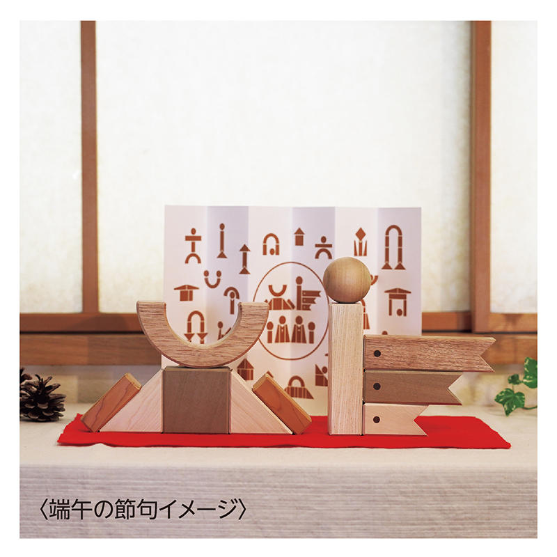 子どもの日を積み木で飾る。新しい発想の積み木。 端午と桃、日本古来の2つの節句を飾り、ふだんは見立て遊びを楽しめる積み木です。国産無垢材の複数の樹種を無塗装で仕上げ、樹種による自然な色の違いや木の温かみが豊かな感性を育みます。 ●サイズ(パッケージ外寸・約):幅25.6×奥行18.8×高さ6.8cm ●セット重量(約):1kg ●材質:トチ、ホオ、クルミ、サクラ、セン、センダンなど計4種以上 ●セット内容:積み木×28ピース、毛氈、屏風 ●対象年齢:3歳以上 ●日本製 ※時期により使用する樹種が異なります。 ※無垢材を使用してるため、色・風合い・重さなどが異なる場合があります。 ※ご使用後の返品・交換はお受けできません。