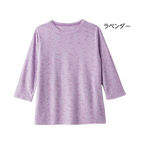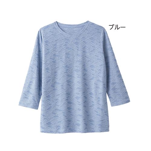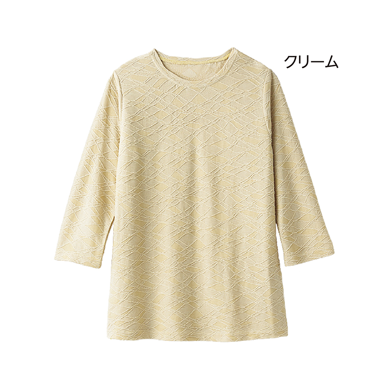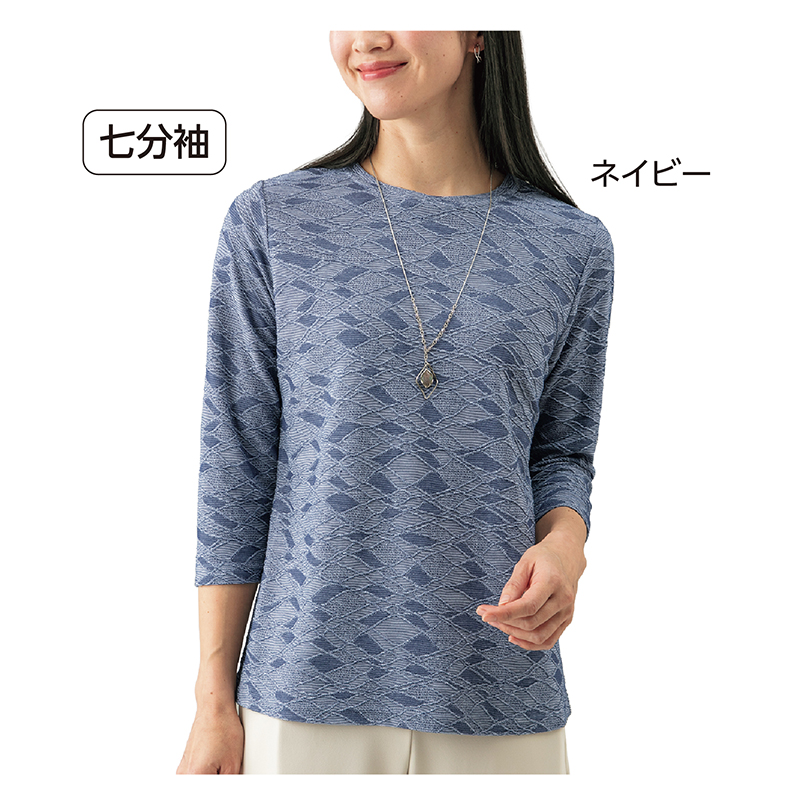 表情感のある幾何学模様。吸汗速乾で快適な着心地。 幾何学模様が印象的なプルオーバー。吸汗速乾素材エンジェロンを採用して、汗をかいてもさわやか。レーヨン混のドレープデザインで、快適な着心地です。 ●素材:レーヨン62%、ポリエステル38% ●洗濯機可(ネット使用) ●日本製 ※アクセサリーは付属しません。 ※商品の性格上、一点一点柄の出方が多少異なります。