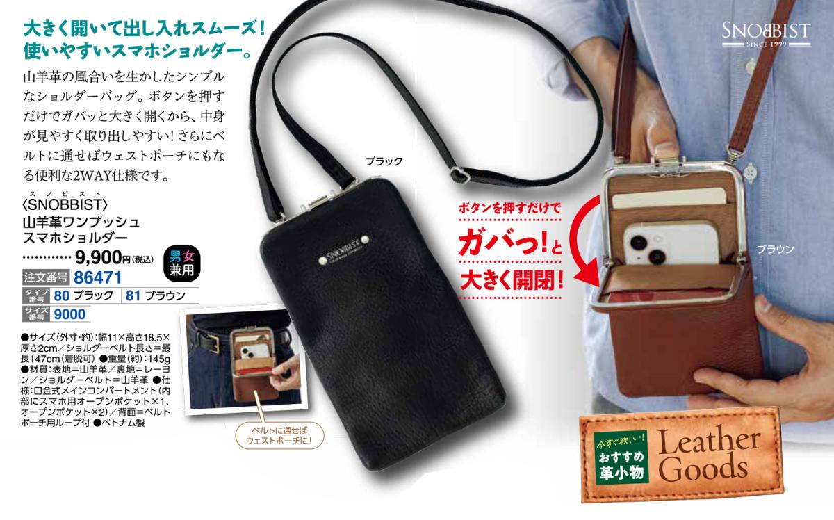 <SNOBBIST>山羊革ワンプッシュスマホショルダー