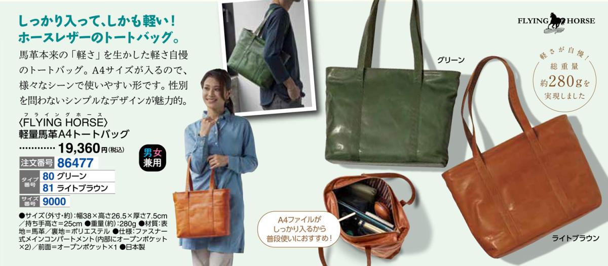 3. <FLYING HORSE>軽量馬革A4トートバッグ