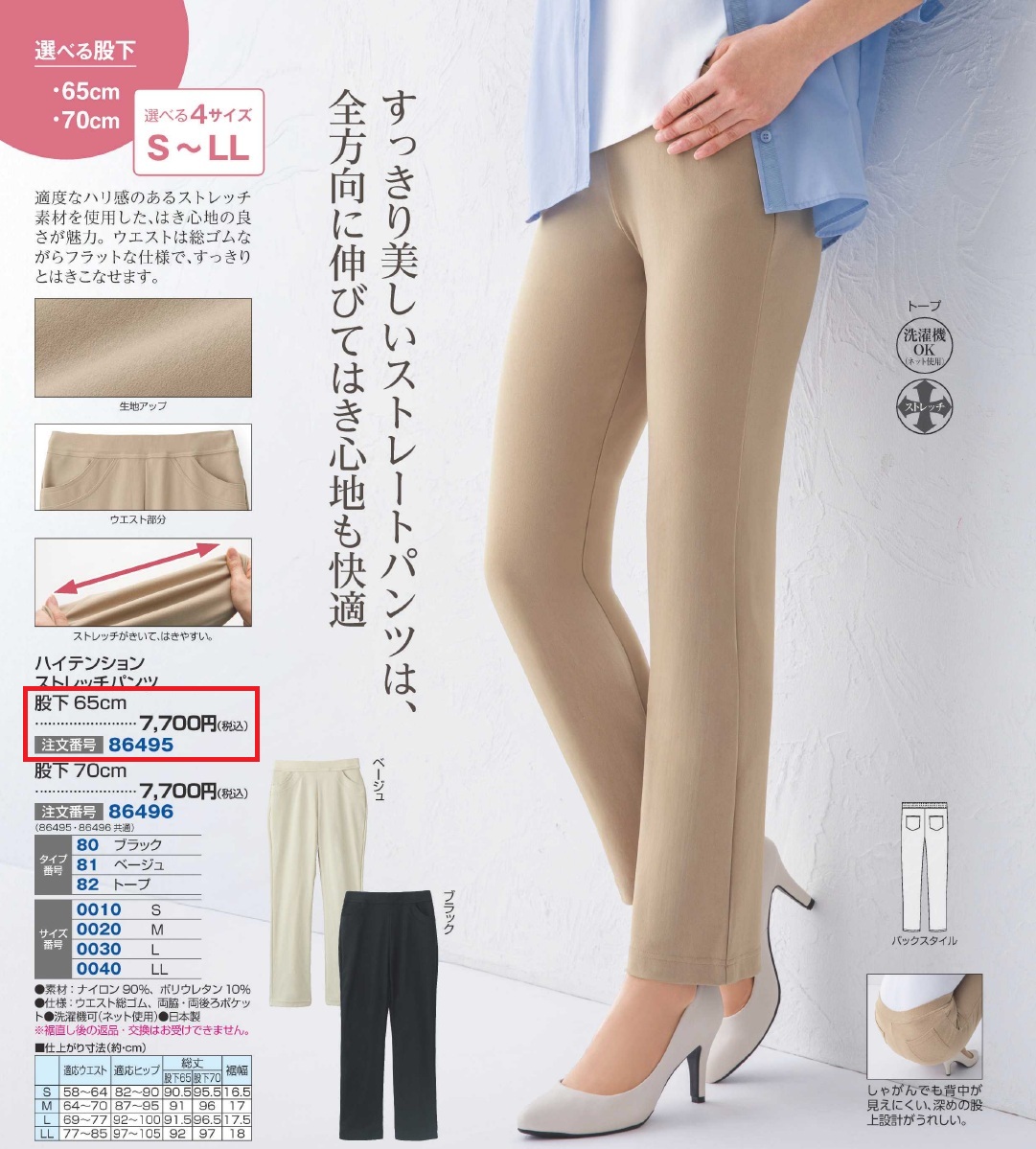 ハイテンションストレッチパンツ 股下65cm