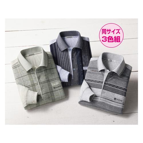 杢ジャカードデザイン長袖ポロシャツ(同サイズ3色組)