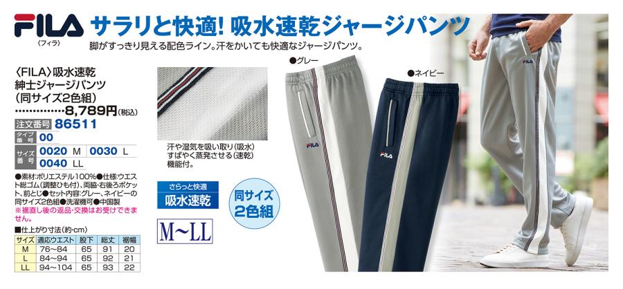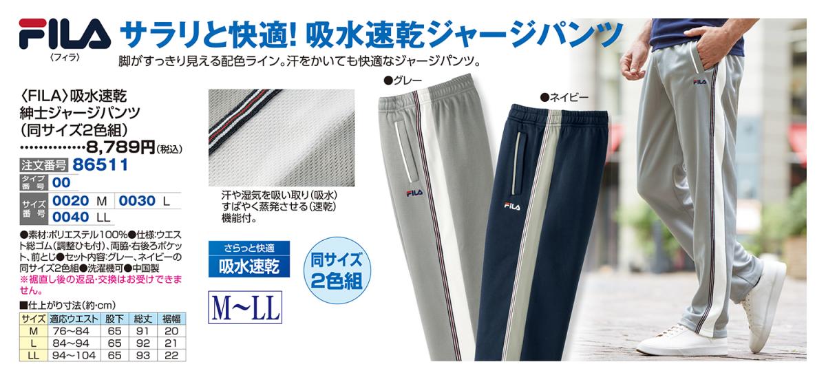 〈FILA〉吸水速乾紳士ジャージパンツ(同サイズ2色組)