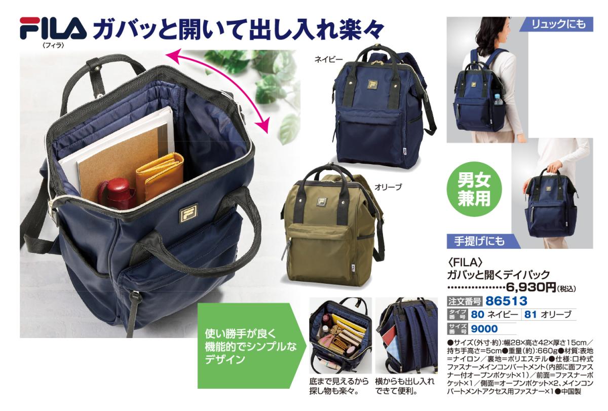 〈FILA〉ガバッと開くデイパック