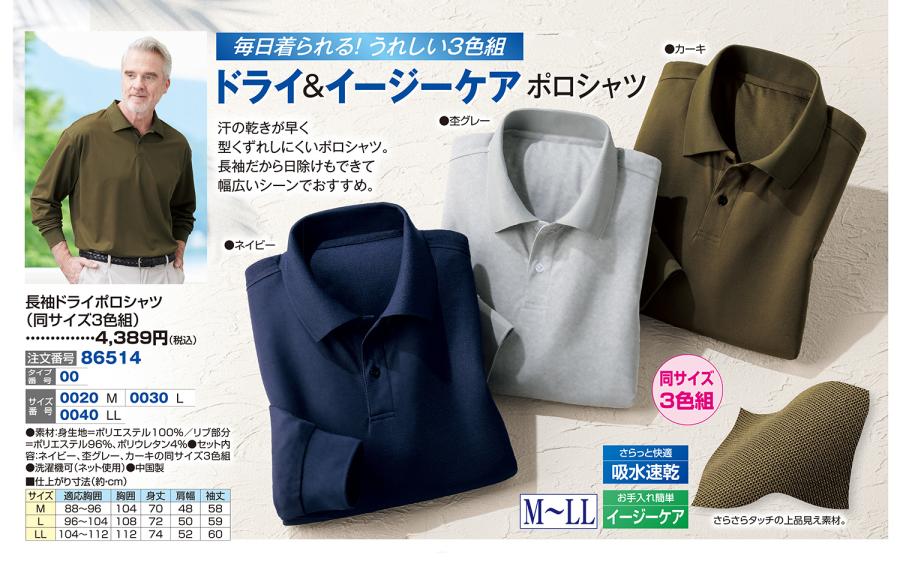 3. 長袖ドライポロシャツ(同サイズ3色組)