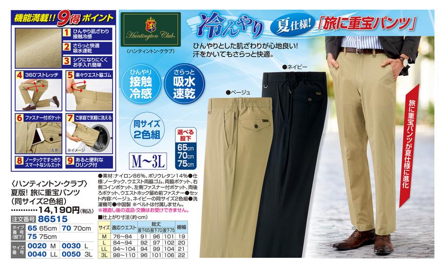 〈ハンティントン・クラブ〉夏版!旅に重宝パンツ(同サイズ2色組)