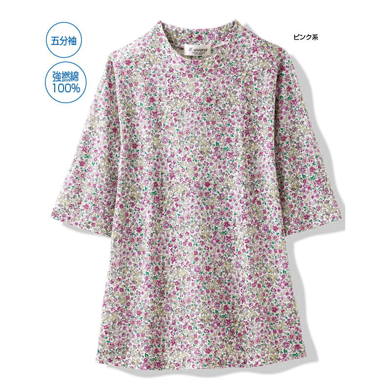 さらっと強撚綿の小花柄プルオーバー