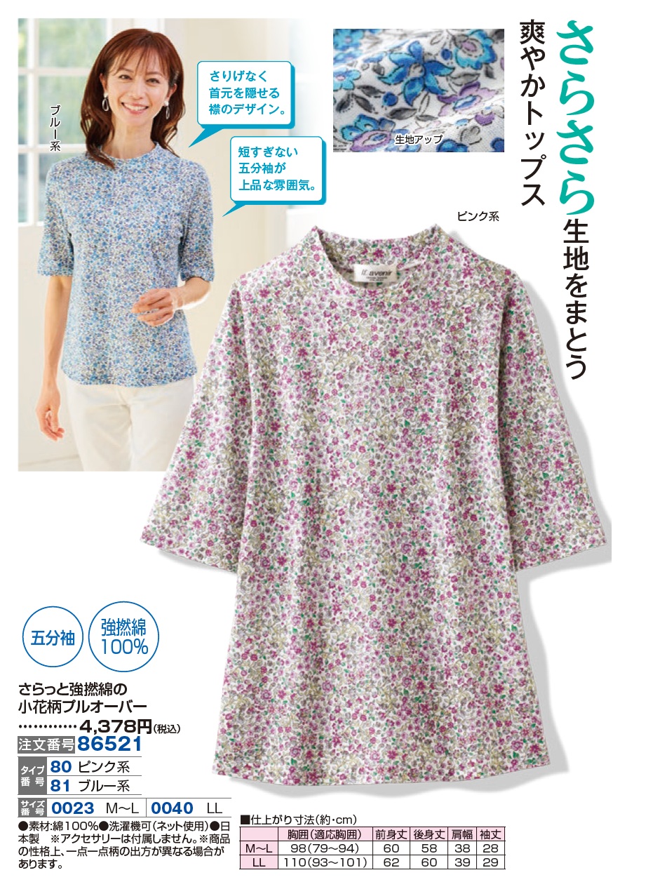3. さらっと強撚綿の小花柄プルオーバー