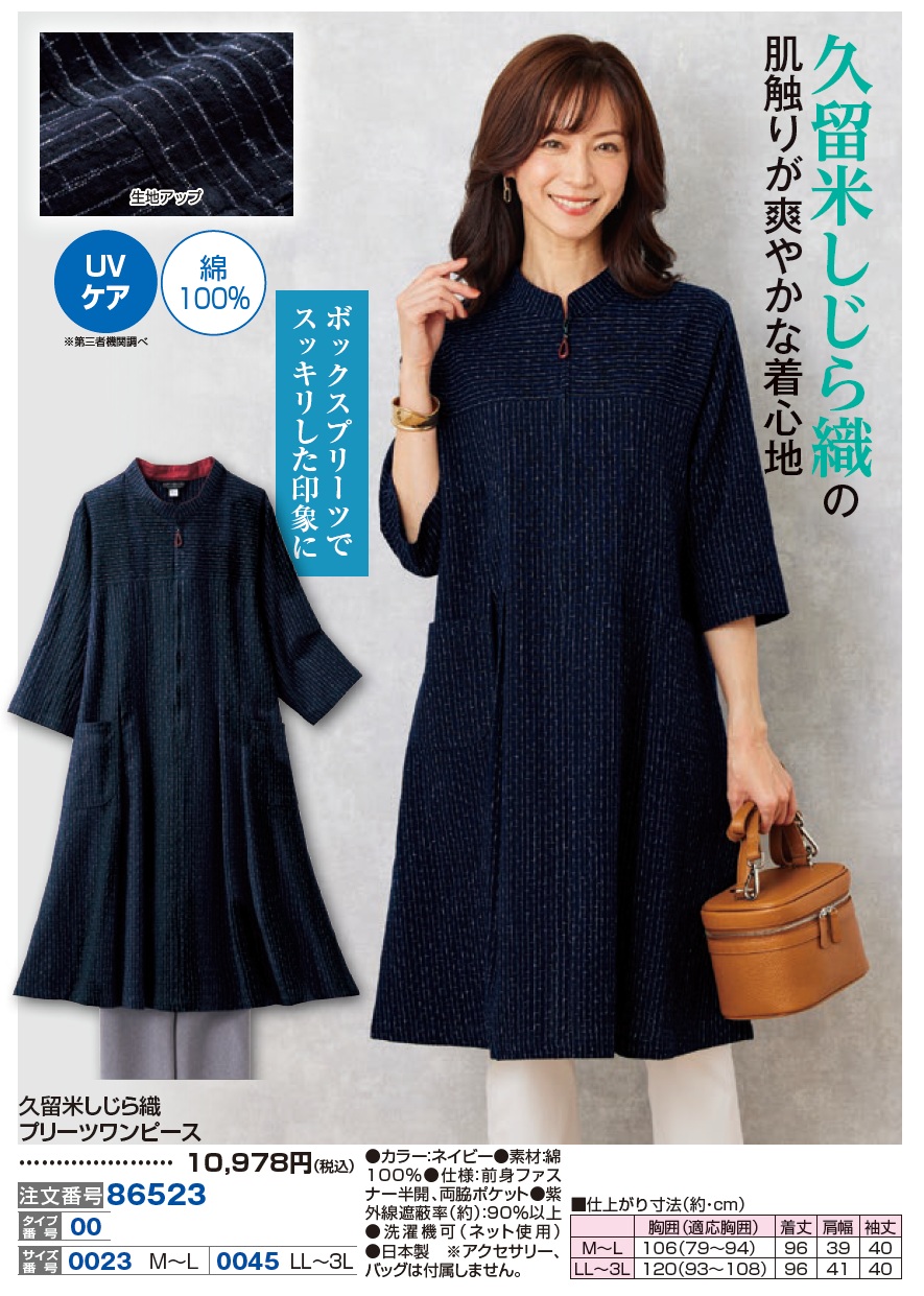 久留米しじら織プリーツワンピース
