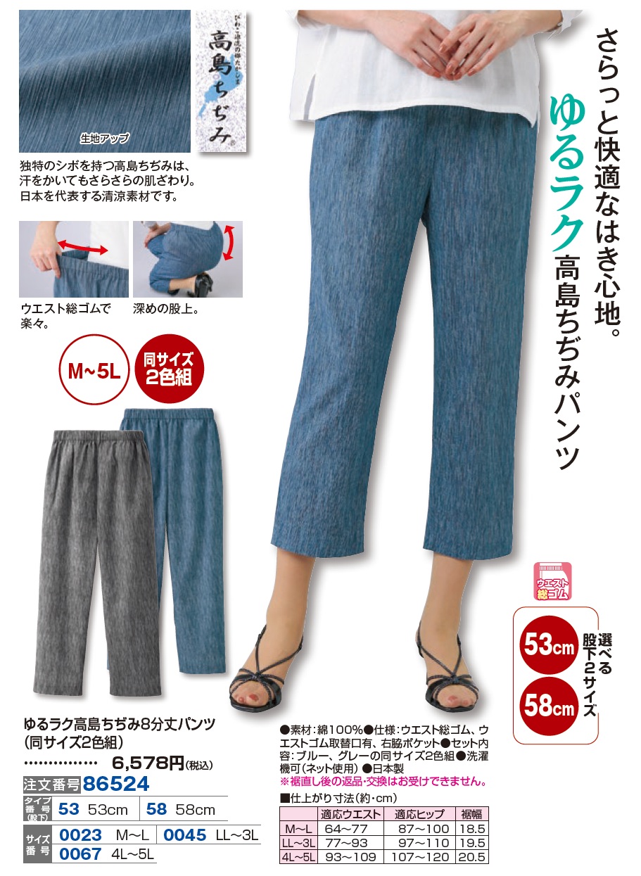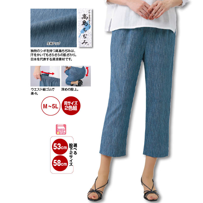ゆるラク高島ちぢみ8分丈パンツ(同サイズ2色組)