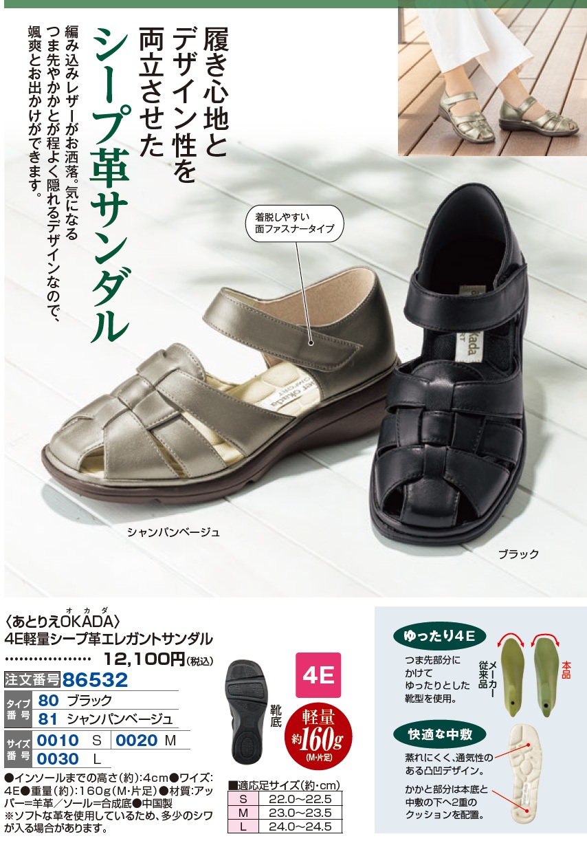 <あとりえOKADA>4E軽量シープ革エレガントサンダル