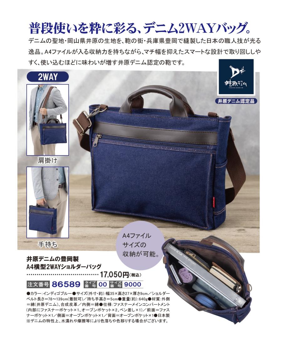 井原デニムの豊岡製A4横型2WAYショルダーバッグ