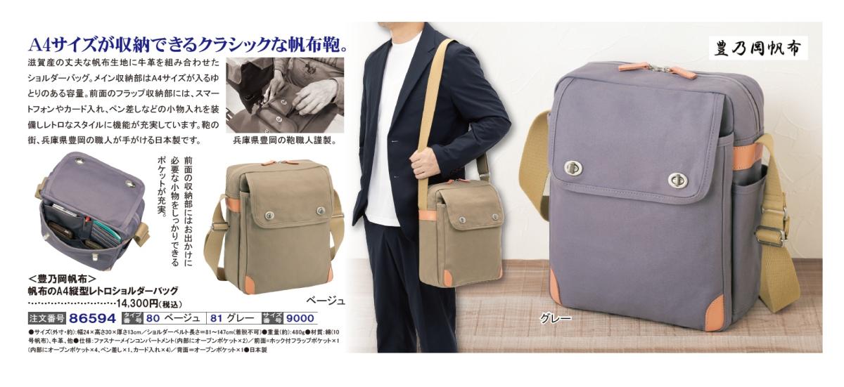 3. 〈豊乃岡帆布〉帆布のA4縦型レトロショルダーバッグ