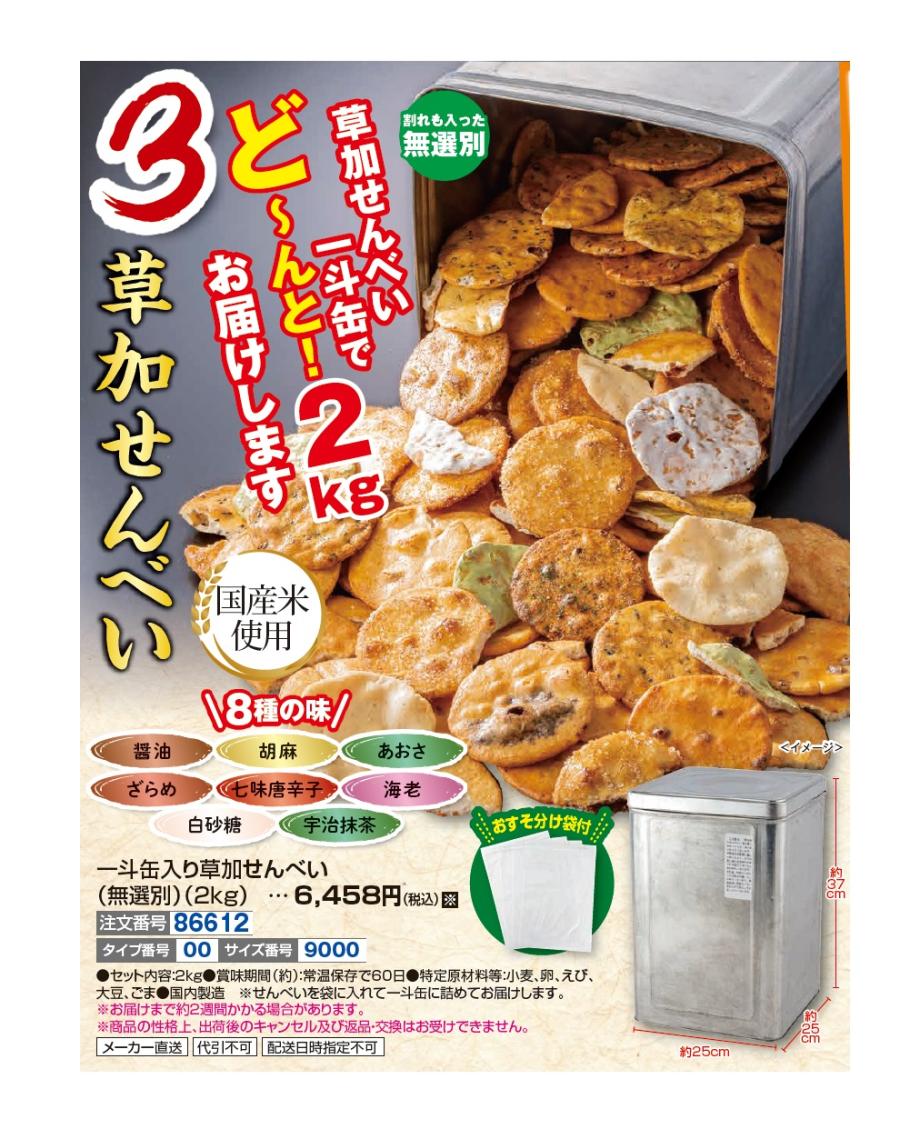 3. 一斗缶入り草加せんべい(無選別)(2kg)