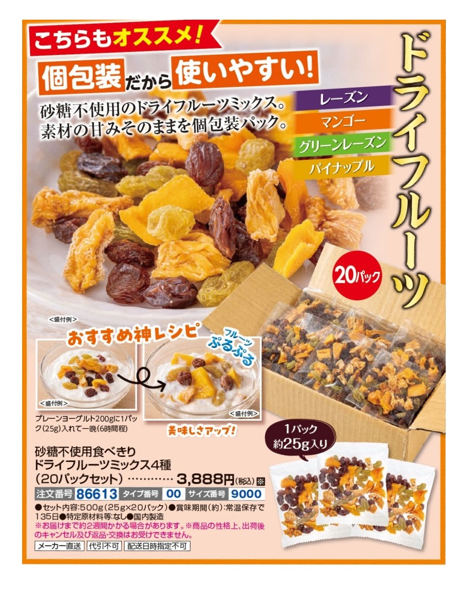 3. 砂糖不使用食べきりドライフルーツミックス4種(20パックセット)