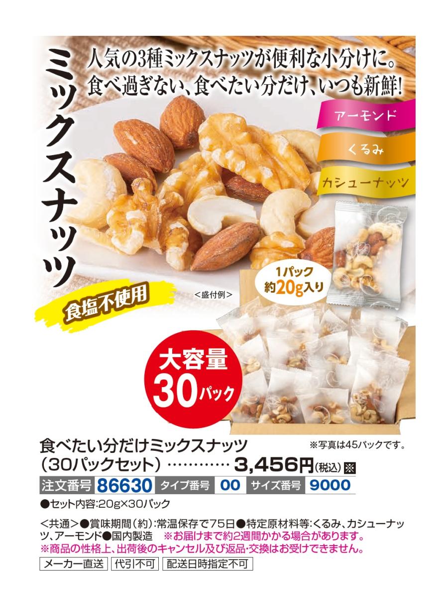3. 食べたい分だけミックスナッツ(30パックセット)