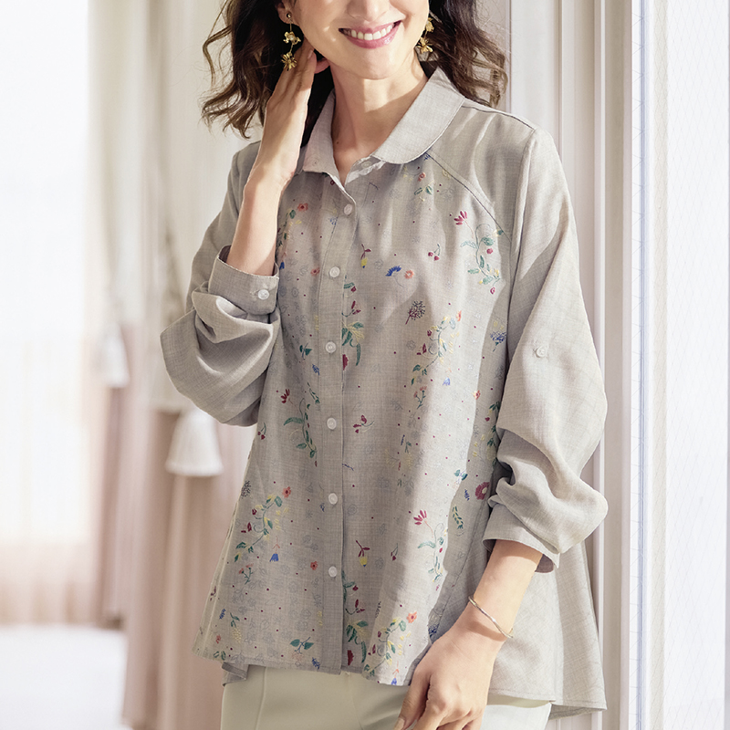 発泡プリントブラウス