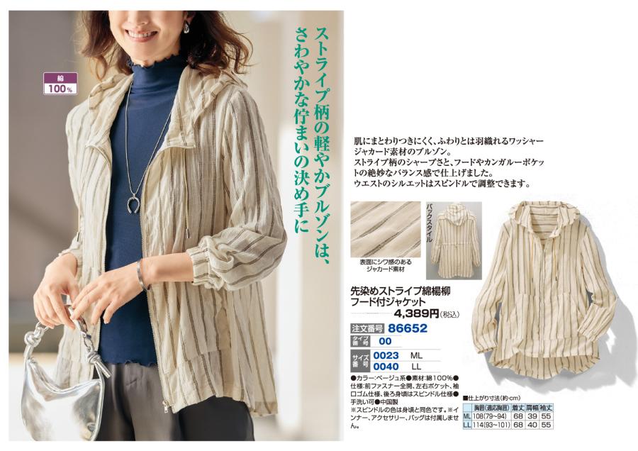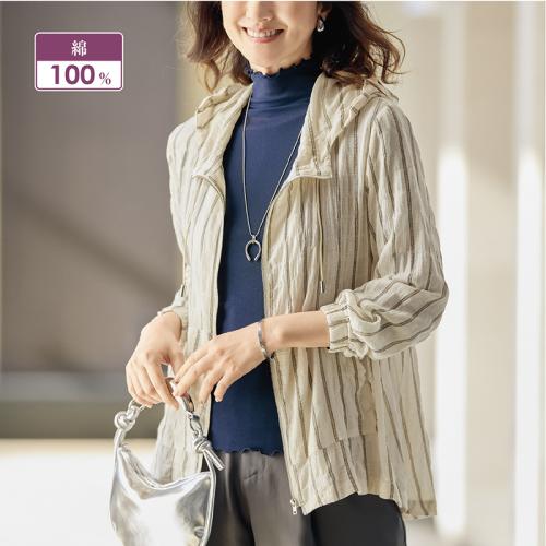 3. 先染めストライプ綿楊柳フード付ジャケット