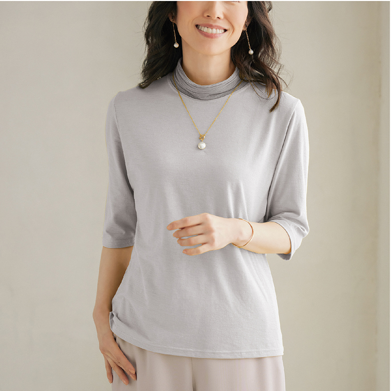 襟プリーツ五分袖プルオーバー