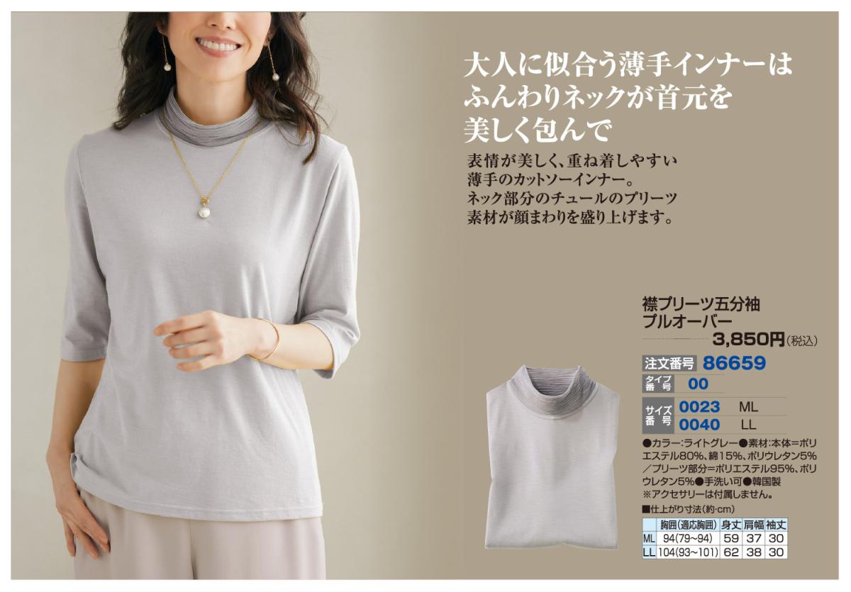 3. 襟プリーツ五分袖プルオーバー