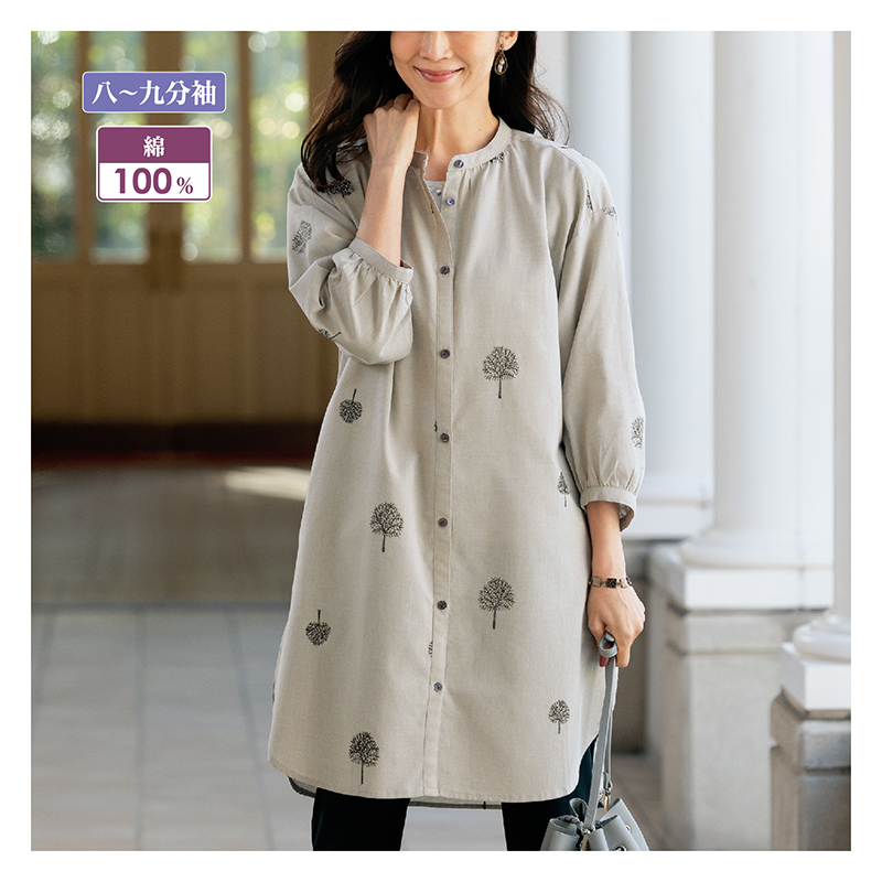 刺しゅう使い綿ロングブラウス