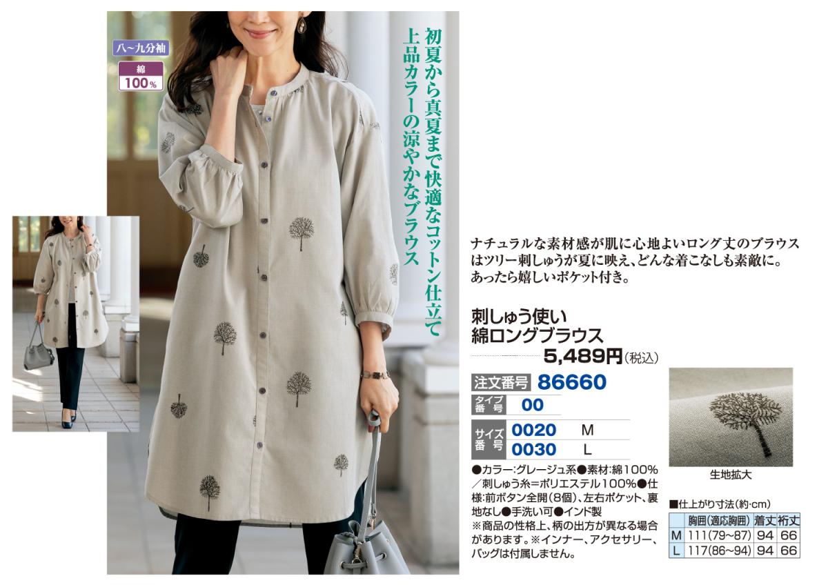 3. 刺しゅう使い綿ロングブラウス