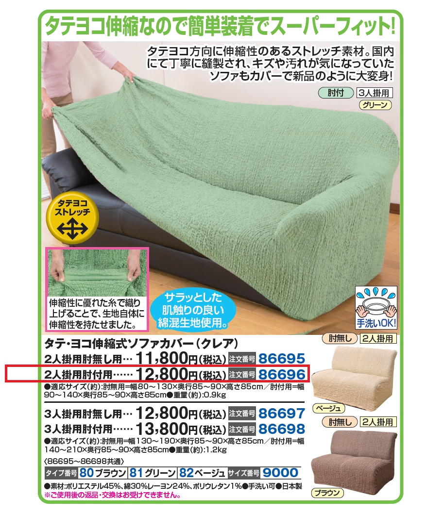3. 2人掛用肘付用/タテ・ヨコ伸縮式ソファカバー(クレア)