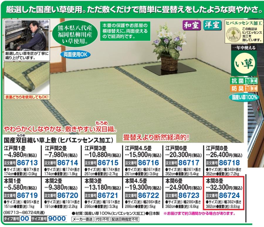 本間8畳/国産双目織い草上敷(ヒバエッセンス加工)